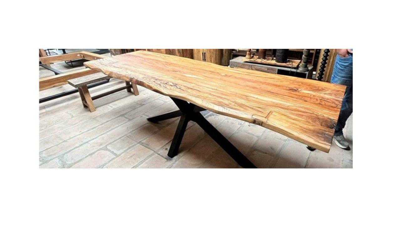 A spacious dining table made from durable neem wood, offering a unique grain pattern and a sturdy build. Its generous proportions make it ideal for large gatherings and festive meals.