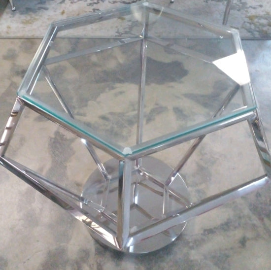 Hexagonal Stainless & Clear Glass Side Table