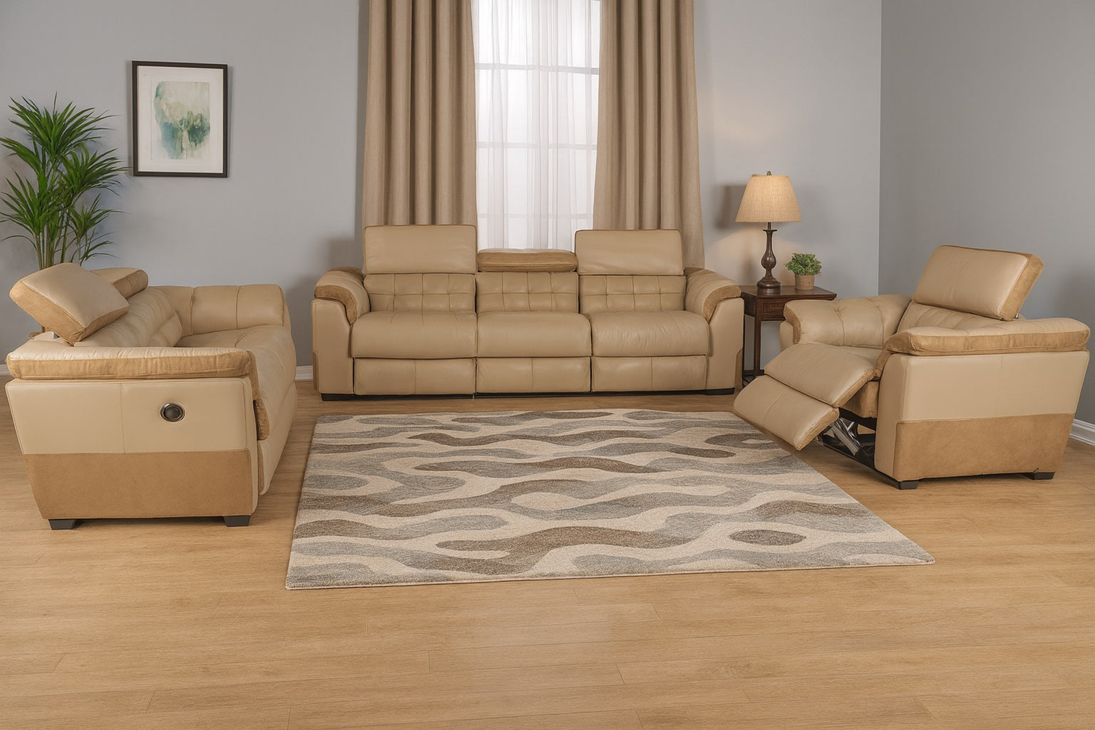 The Panama 3-2-1 5-action motion suite makes a dramatic statement by personalizing superb comfort for each individual that sinks into it. Featuring adjustable, click-clack headrests for selection of your preferred seating position. Extremely large proportioned seats and quilted/dimple effect on backrests, armrests and seats give this suite a modern aesthetic and a commanding presence in any living area.
